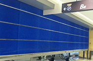 擋煙垂簾垂壁根據設計要求和現場實際情況采取如下施工順序:首先,搭設腳手架一放線一打眼--上脹栓一焊骨架。第二,吊件一安裝骨架…